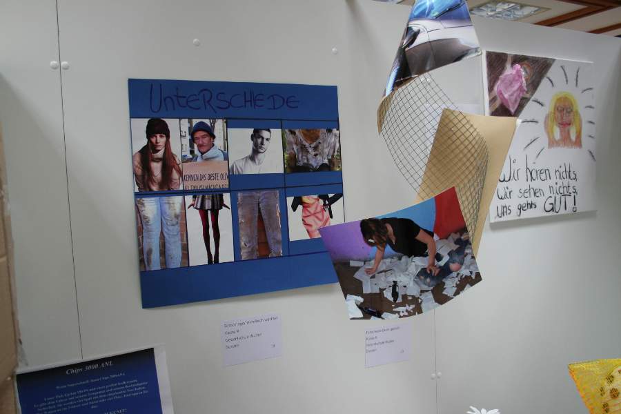 Ausstellungsarbeiten der Schülerinnen und Schüler zu "Kunst trotz(t) Armut"